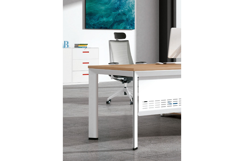 鋼木結(jié)構(gòu)。桌架采用優(yōu)質(zhì)鋼梁焊接,桌架采用拆裝式結(jié)構(gòu),鋅合金配件與鋼梁相連接,鋼梁壁厚2MM,下配塑料可調(diào)腳。